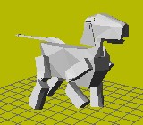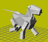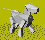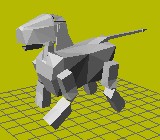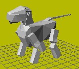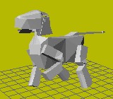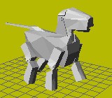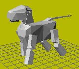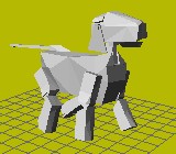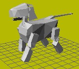 | スタートポーズ | 重心を落としつつ、重心を右に移動。 | 右後ろ足を上げつつ、左前足をつっぱる。重心移動を助ける。 | 右前足を上げる。 | 3本の足で地面を後ろに蹴りながら右前足を前に出す。 | 重心を左に移動。 | 左前に重心を移す。右後ろ足は突っ張って重心移動を助ける。 | 右後ろ足を上げる。 | 右後ろ前を前に降ろす。このとき体は前に進まない。 | 左前足を元に戻して姿勢を整える。 | 左後ろ足を縮めて重心を左後ろへ。右前足は突っ張って重心移動を助ける。 | 右前足を上げる。 | 3本の足で地面を蹴り、前に進む。右前足を手前に下ろす。 | 姿勢を整えて重心を右に移す。 |