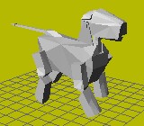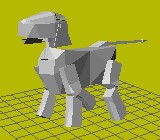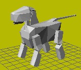 | スタートポーズ | 重心を落としつつ、重心を右に移動。 | 右後ろ足を上げつつ、左前足をつっぱる。重心移動を助ける。 | 右前足を上げる。 | 3本の足で地面を後ろに蹴りながら右前足を前に出す。 | 重心を左に移動。 | 左前に重心を移す。右後ろ足は突っ張って重心移動を助ける。 | 右後ろ足を上げる。 | 右後ろ前を前に降ろす。このとき体は前に進まない。 | 左前足を元に戻して姿勢を整える。 | 左後ろ足を縮めて重心を左後ろへ。右前足は突っ張って重心移動を助ける。 | 右前足を上げる。 | 3本の足で地面を蹴り、前に進む。右前足を手前に下ろす。 | 姿勢を整えて重心を右に移す。 |